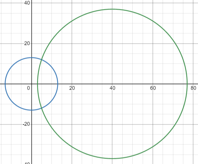 반대로 파란색 원의 반지름이 77로 내접하는 경우도 생길 수 있다.