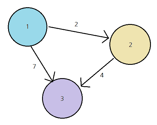 정점 1에서 3까지 가는 최단 경로를 찾을 것이다.