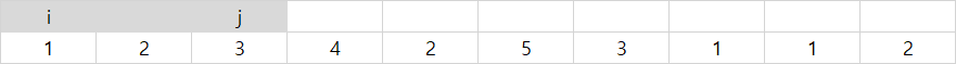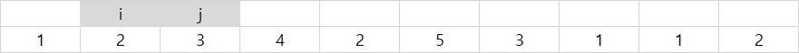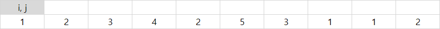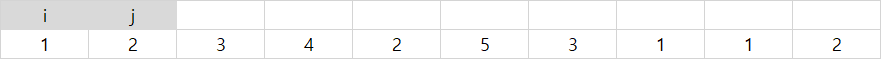 i, j는 위와 같이 초기값 0으로 선언되어 맨 처음 원소인 1을 가르키고 있다.