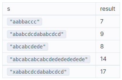 다른 예로, "abcabcdede"와 같은 경우, 문자를 2개 단위로 잘라서 압축하면 "abcabc2de"가 되지만, 3개 단위로 자른다면 "2abcdede"가 되어 3개 단위가 가장 짧은 압축 방법이 됩니다. 이때 3개 단위로 자르고 마지막에 남는 문자열은 그대로 붙여주면 됩니다.