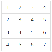 여기서 (2, 2)부터 (3, 4)까지 합을 구하면 3+4+5+4+5+6 = 27이고, (4, 4)부터 (4, 4)까지 합을 구하면 7이다.