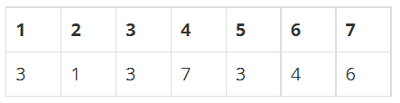 예를 들어, 한 반에 7명의 학생이 있다고 하자. 학생들을 1번부터 7번으로 표현할 때, 선택의 결과는 다음과 같다.