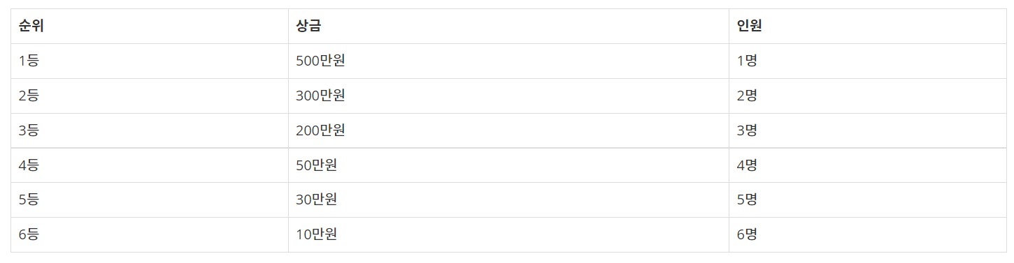 등수별로 상금을 담은 배열을 만들어, 입력받은 등수를 바로 출력한다.