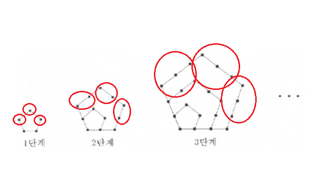 맨 왼쪽 아래의 점은 0단계의 기본값이라고 생각하면 되겠다.
