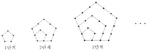 오각형의 각 변에 아래 그림과 같이 점을 찍어 나간다. N단계에서 점의 개수는 모두 몇 개일까?