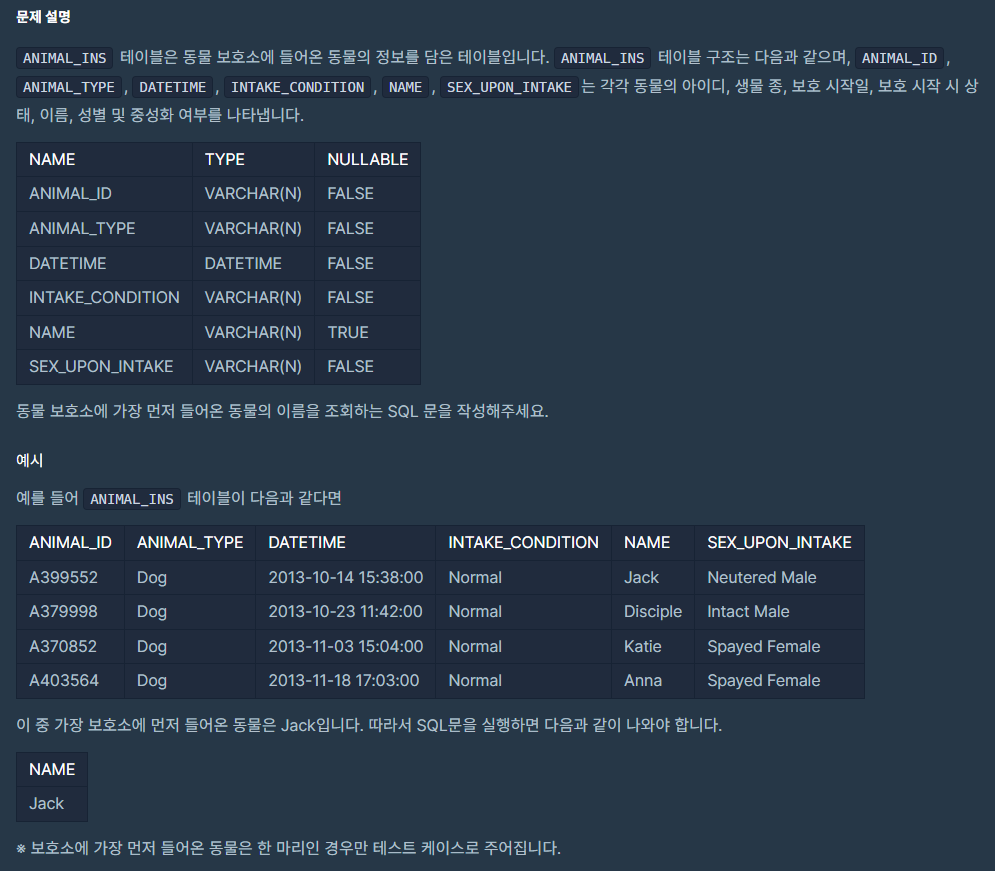 따라서 날짜를 오름차순 정렬한 뒤 LIMIT 1을 통해 가장 상위 케이스 하나만 출력할 수 있다.
