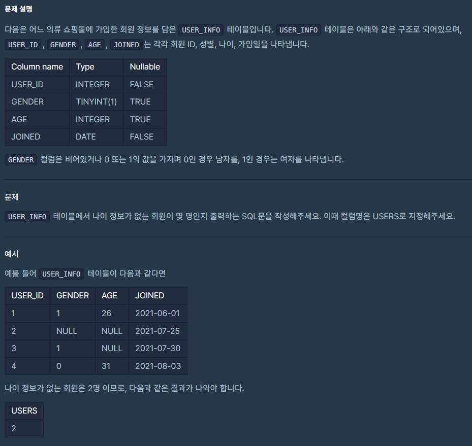 나이 정보가 NULL인 회원의 수를 조회해야 한다.