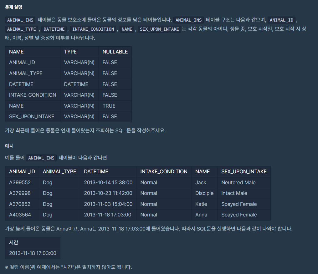 MAX(DATETIME) AS 시간