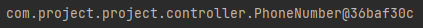 PhoneNumber 클래스를 생성했고 이를 인스턴스화하여 println으로 출력하는 코드를 작성했다. toString을 재정의하지 않았으므로 이를 실행하면 아래와 같은 결과가 나온다.