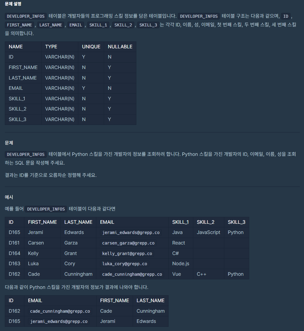 [Lv.2 / 프로그래머스 / SQL] 조건에 맞는 개발자 찾기 (0) | 2024.03.07 |