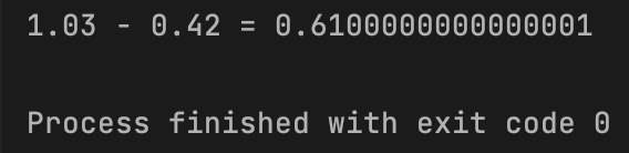 System.out.println("1.03 - 0.42 = " + (1.03 - 0.42));