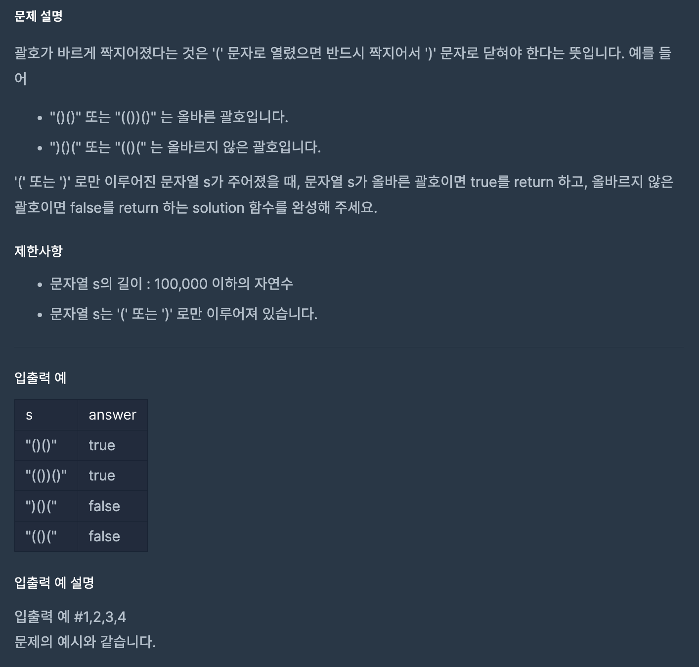 # 순회가 끝났는데 스택이 비어있지 않으면 잘못된 괄호