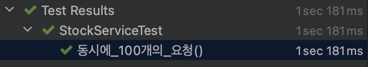 '재고감소' 테스트는 정상적으로 통과하나, 동시에 100개 요청하는 테스트 코드를 실행하면 아래와 같은 오류가 발생한다.