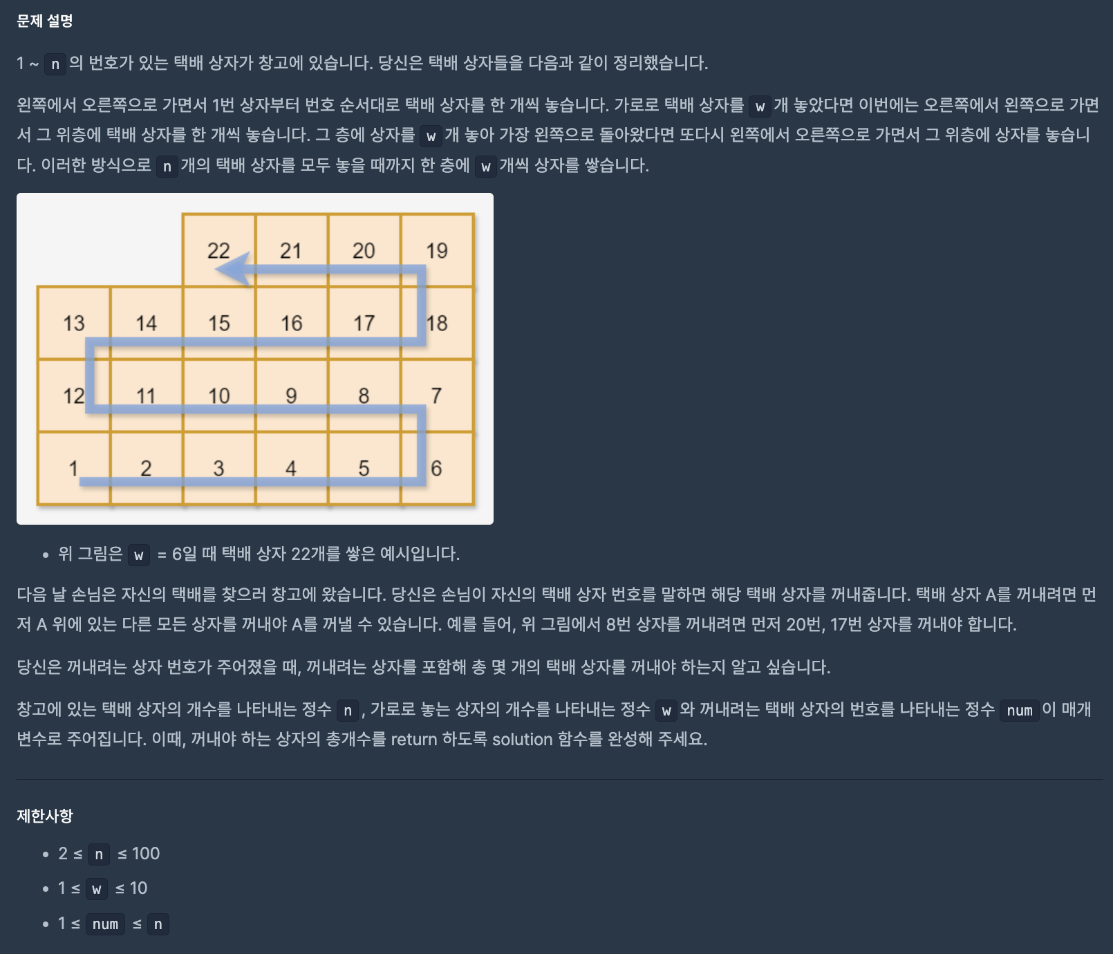 주어진 조건대로 상자를 쌓은 뒤, 해당 지점에서부터 몇 층의 박스가 쌓여있는지 확인하면 된다.