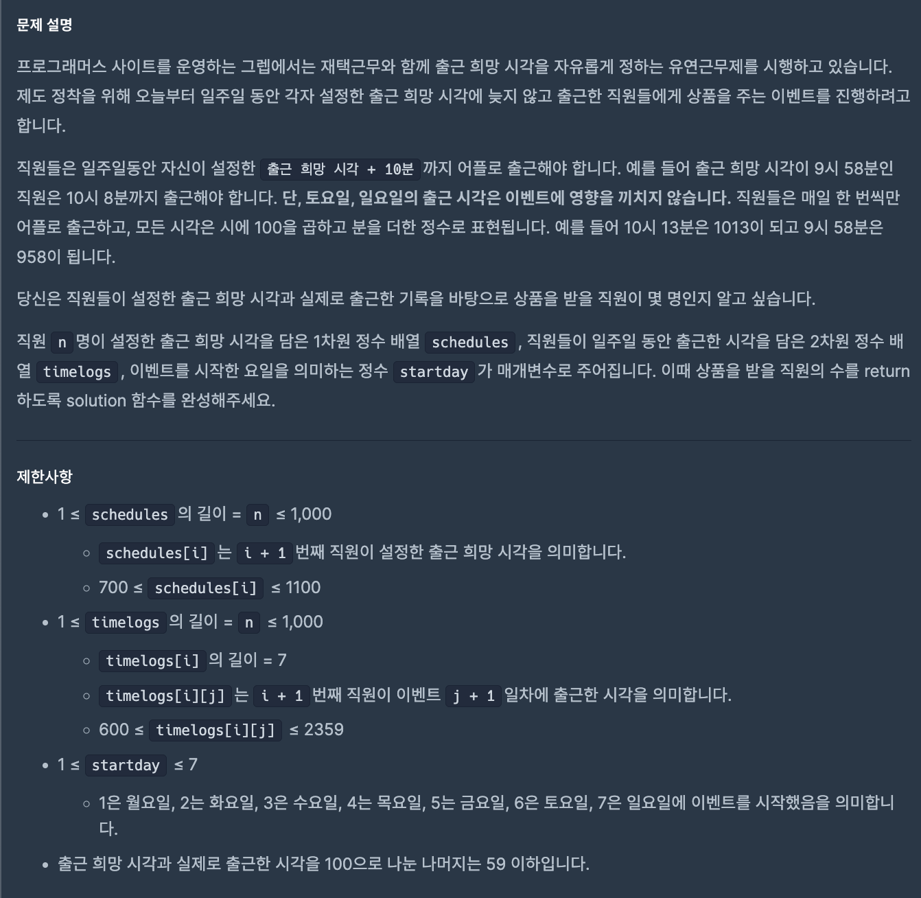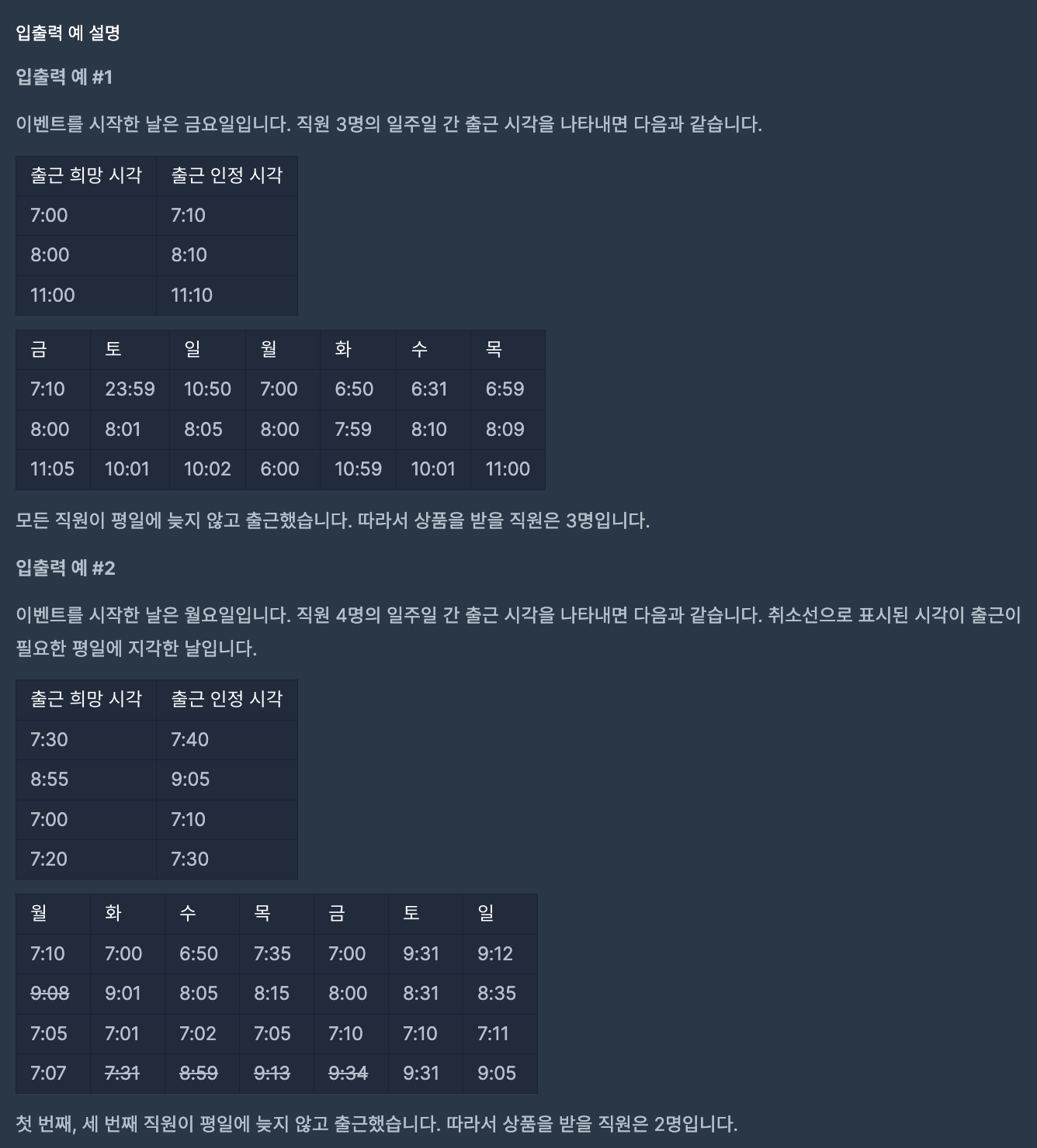 또한 요일 체크를 쉽게 하기 위해 나머지 연산을 사용하면 좋다.