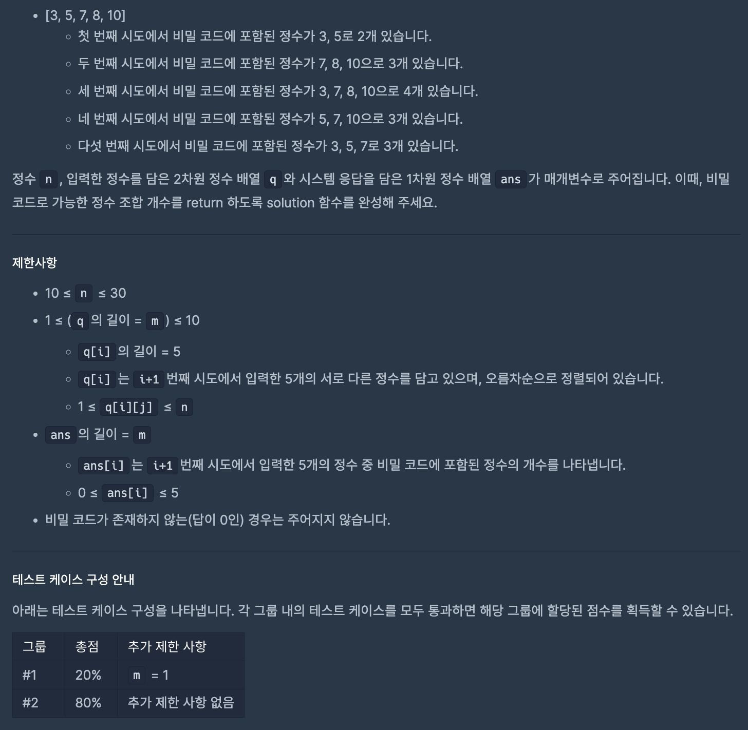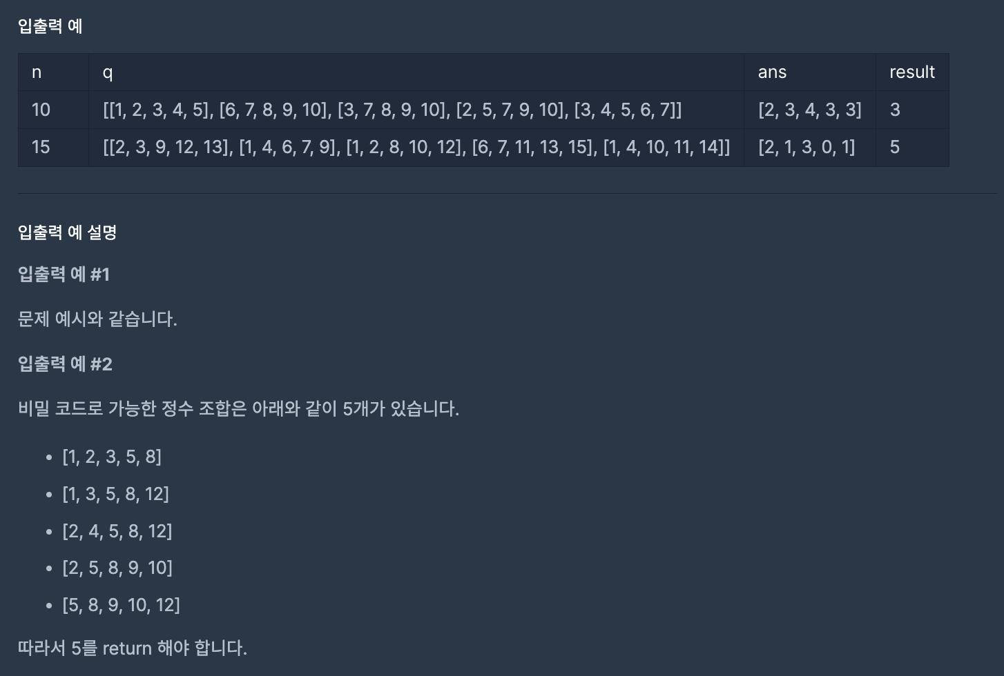 # 현재 조합과 q를 비교하며 ans와 일치하는지 판별