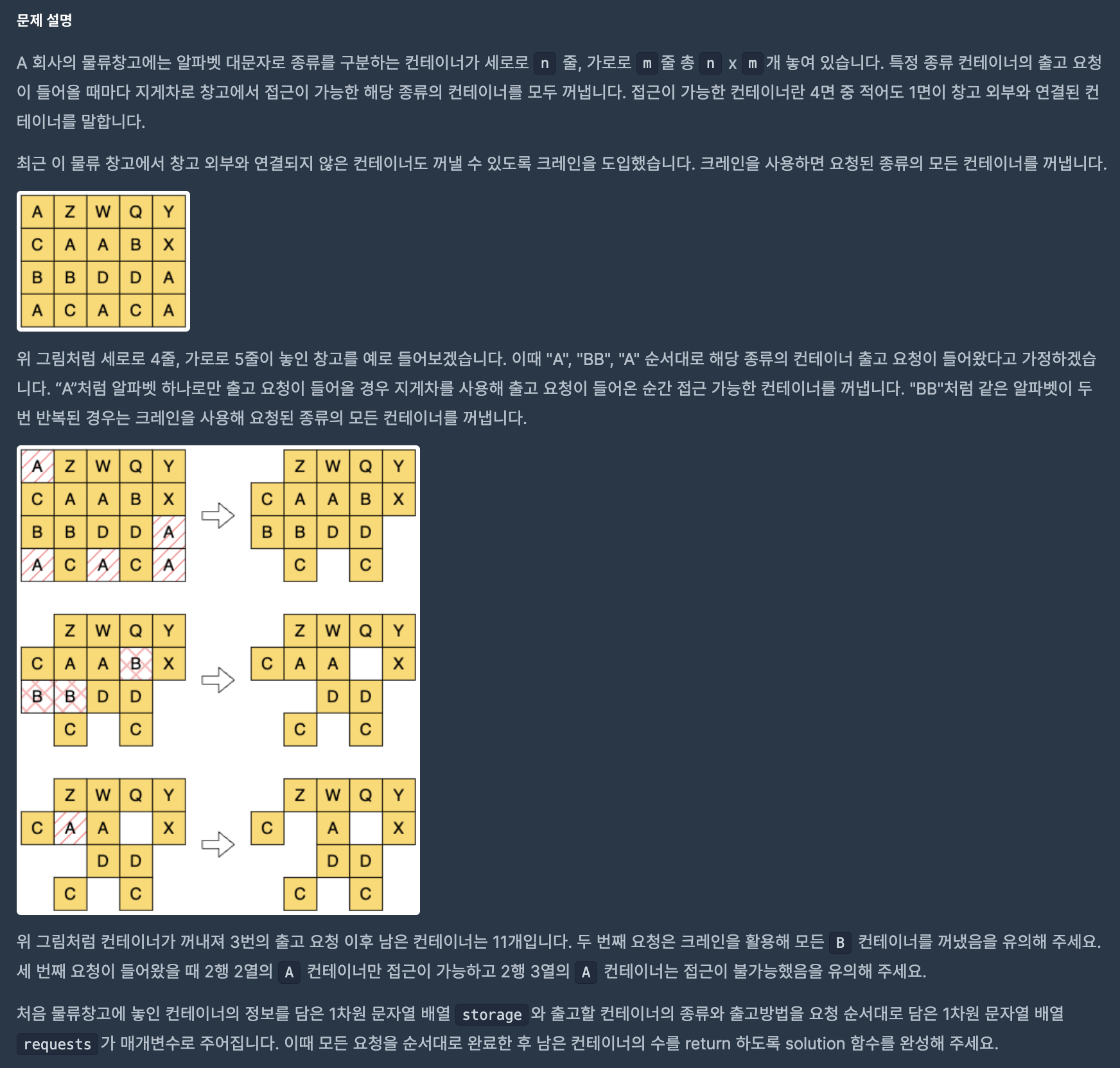 requests를 순회하며 처리하는 시뮬레이션에서 BFS를 수행하는 문제이다.