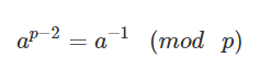 즉, (k!(n-k)!)-1 % p = (k!(n-k)!)p-2 % p 가 된다.