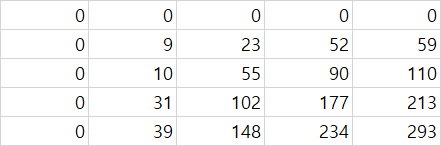 dp[i][j] = area[i-1][j-1] + dp[i-1][j] + dp[i][j-1] - dp[i-1][j-1]
