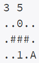 첫째 줄에 미로의 세로 크기 N과 가로 크기 M이 주어진다. (1 ≤ N, M ≤ 50) 둘째 줄부터 N개의 줄에 미로의 모양이 주어진다. 같은 타입의 열쇠가 여러 개 있을 수 있고, 문도 마찬가지이다. 그리고, 문에 대응하는 열쇠가 없을 수도 있다. '0'은 한 개, '1'은 적어도 한 개 있다. 열쇠는 여러 번 사용할 수 있다.
