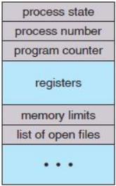 - 프로세스 상태 : new, ready, running, waiting, terminated 등의 상태를 저장