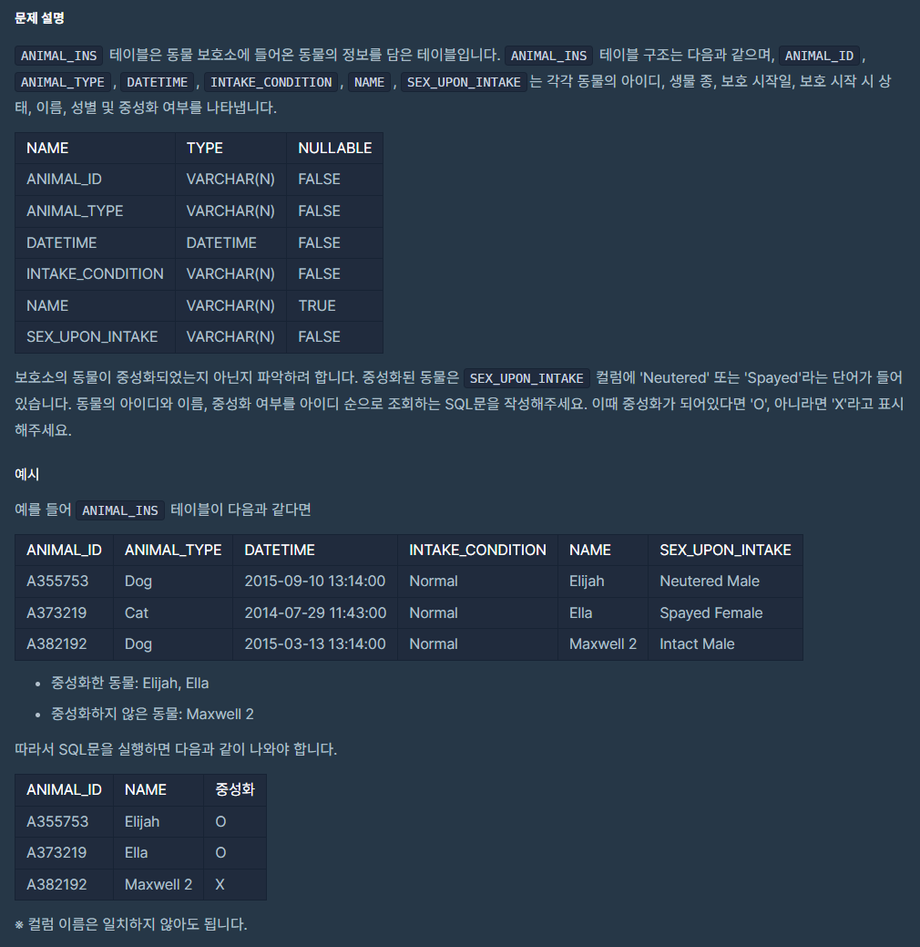 [Lv.2 / 프로그래머스 / SQL] 중성화 여부 파악하기