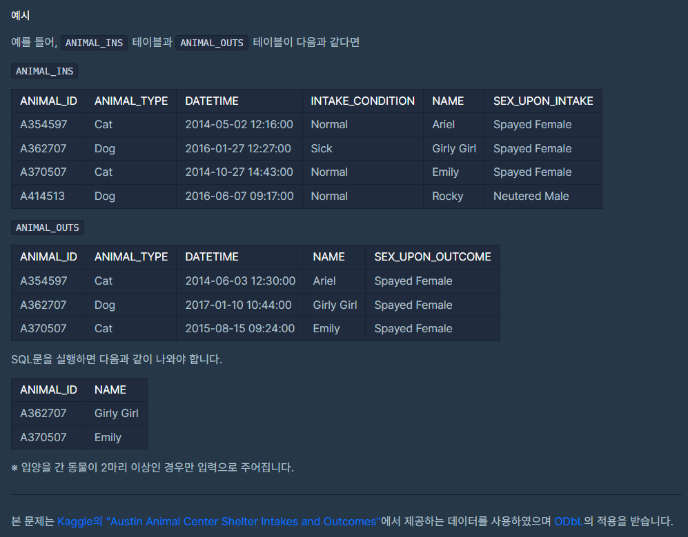 [Lv.3 / 프로그래머스 / SQL] 오랜 기간 보호한 동물 (2)