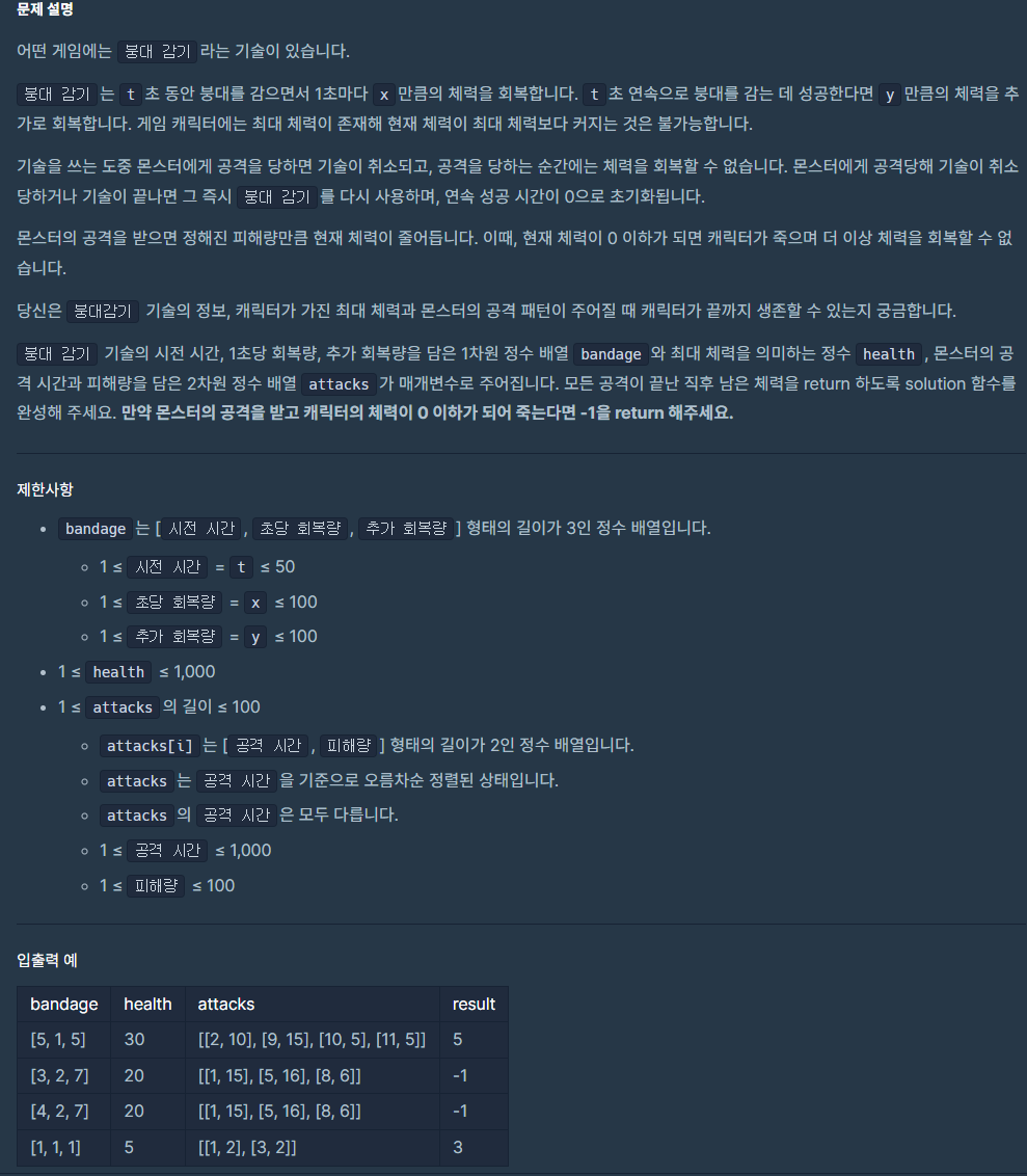 [Lv.1 / 프로그래머스 / 파이썬] 붕대 감기 (PCCP 기출문제 1번)
