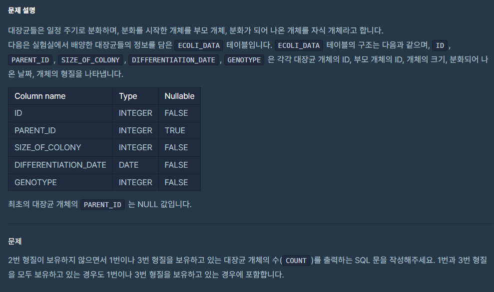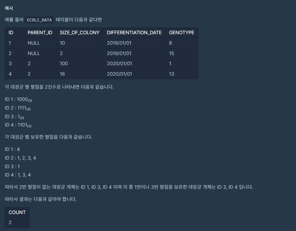 [Lv.1 / 프로그래머스 / SQL] 특정 형질을 가지는 대장균 찾기